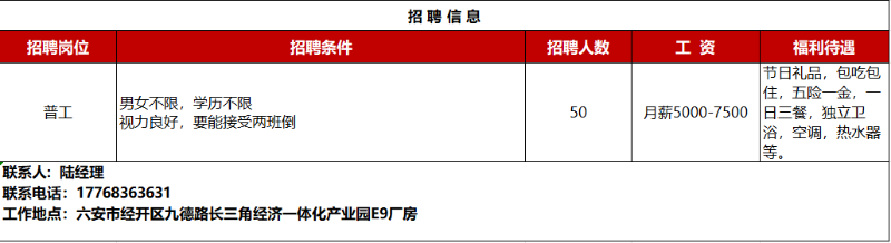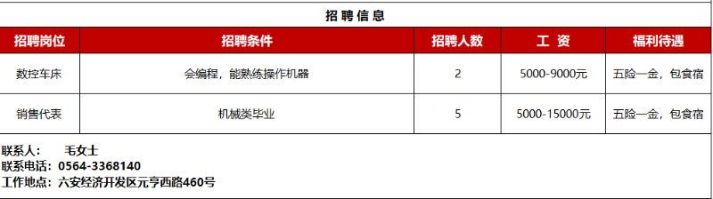 (9月18日) 更多企业招聘信息请登录六安市公共招聘网安徽朗盛环能科技有限公司
