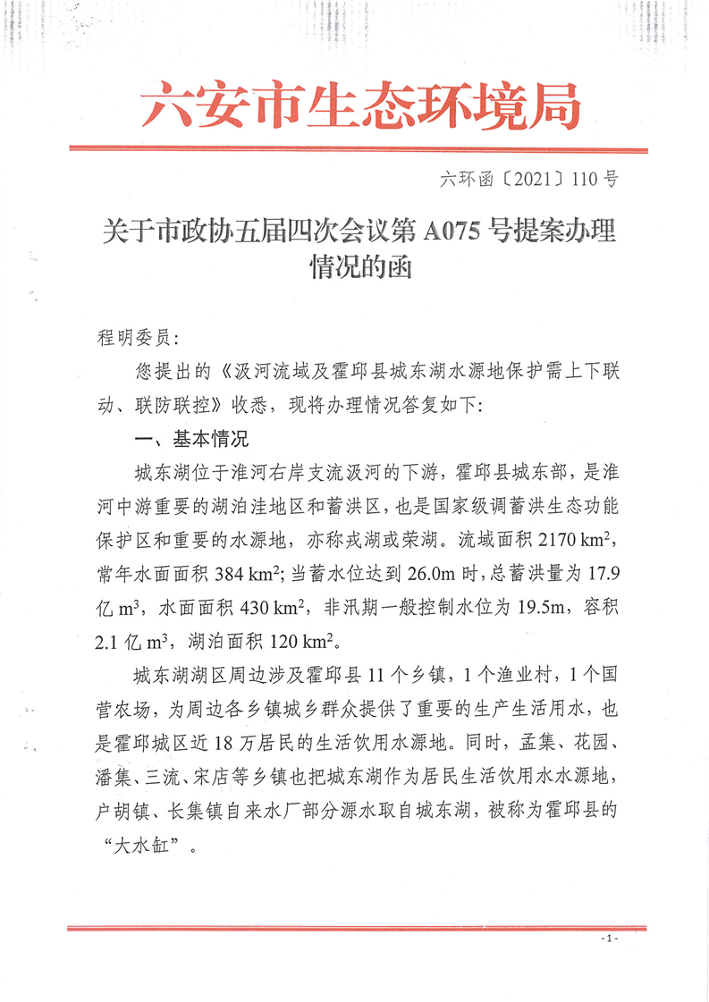 【市政协委员提案办理】六安市裕安区德赢VWIN关于市政协五届四次会议第A075号委员提案的答复函