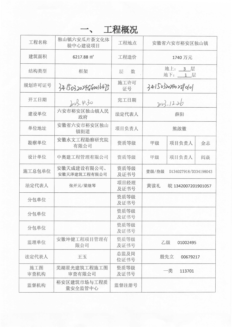 独山镇六安瓜片茶文化体验中心及配套基础设施项目工程竣工验收报告