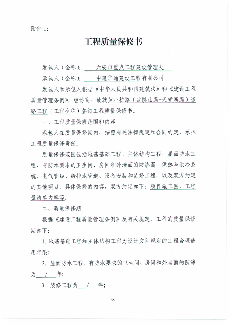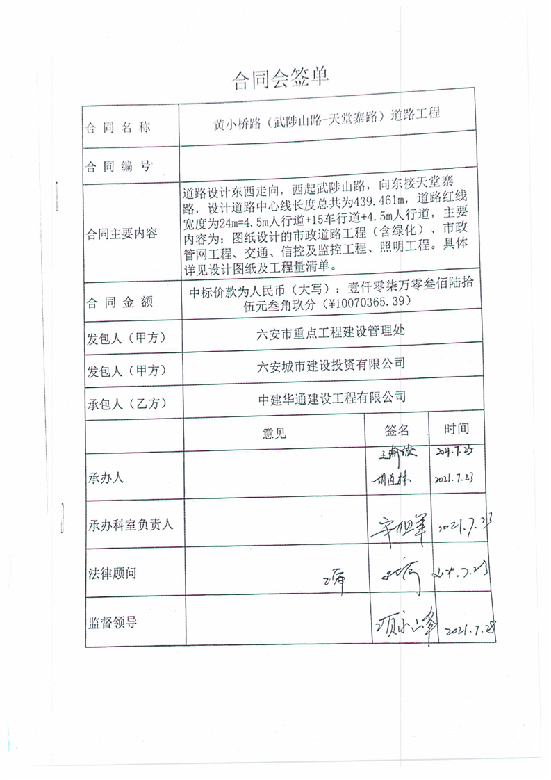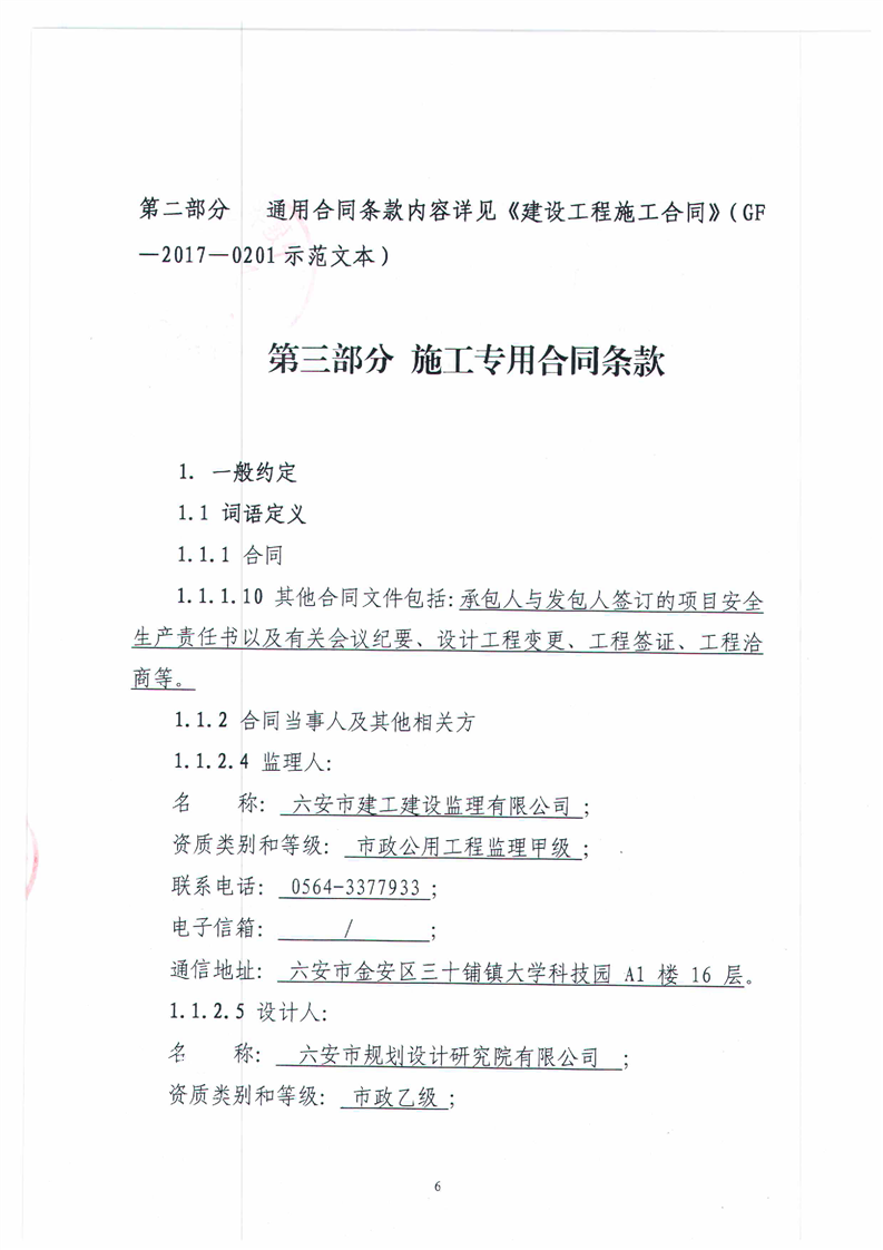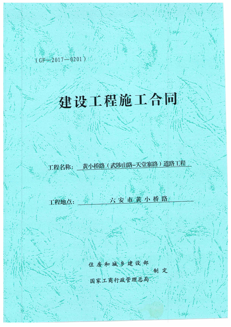 黄小桥路(武陟山路-天堂寨路)道路建设工程施工合同