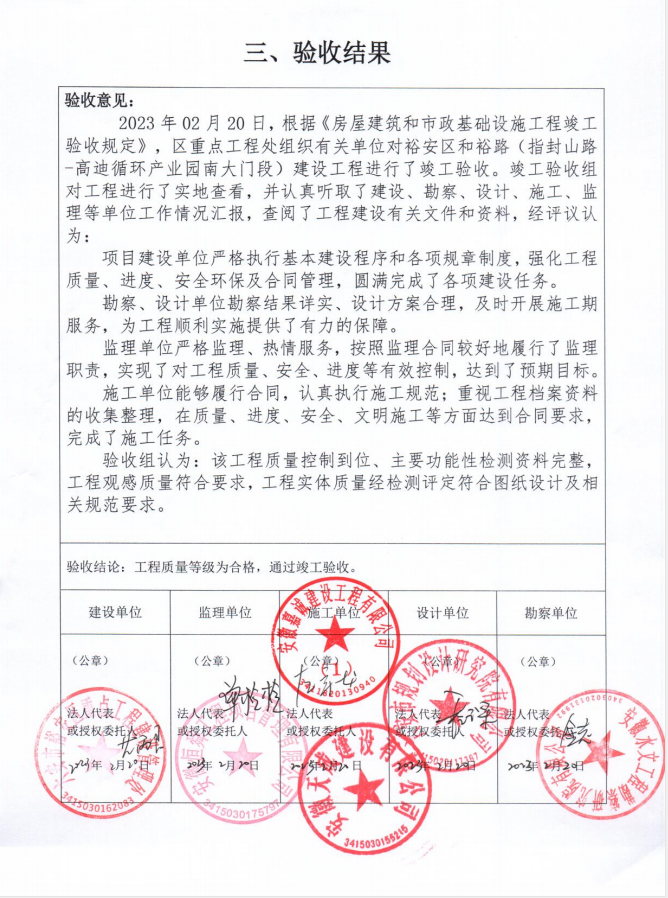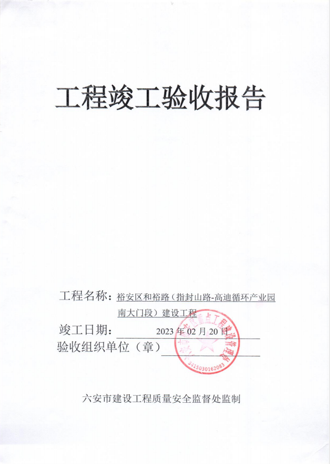 和裕路(指封山路-高迪循环产业园南大门段)建设工程竣工验收报告