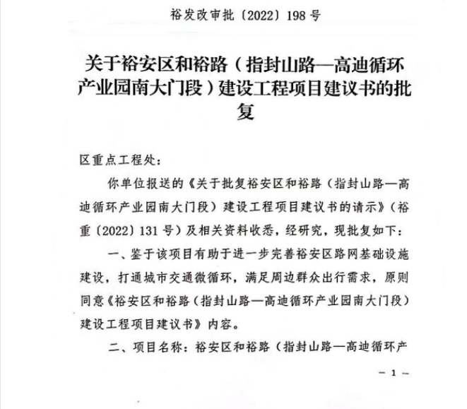 和裕路(指封山路-高迪循环产业园南大门段)建设工程