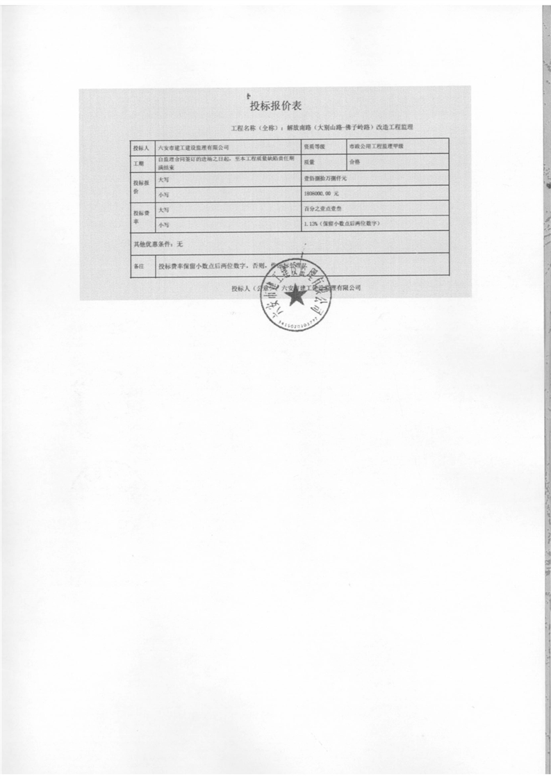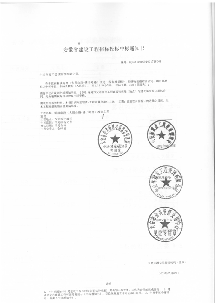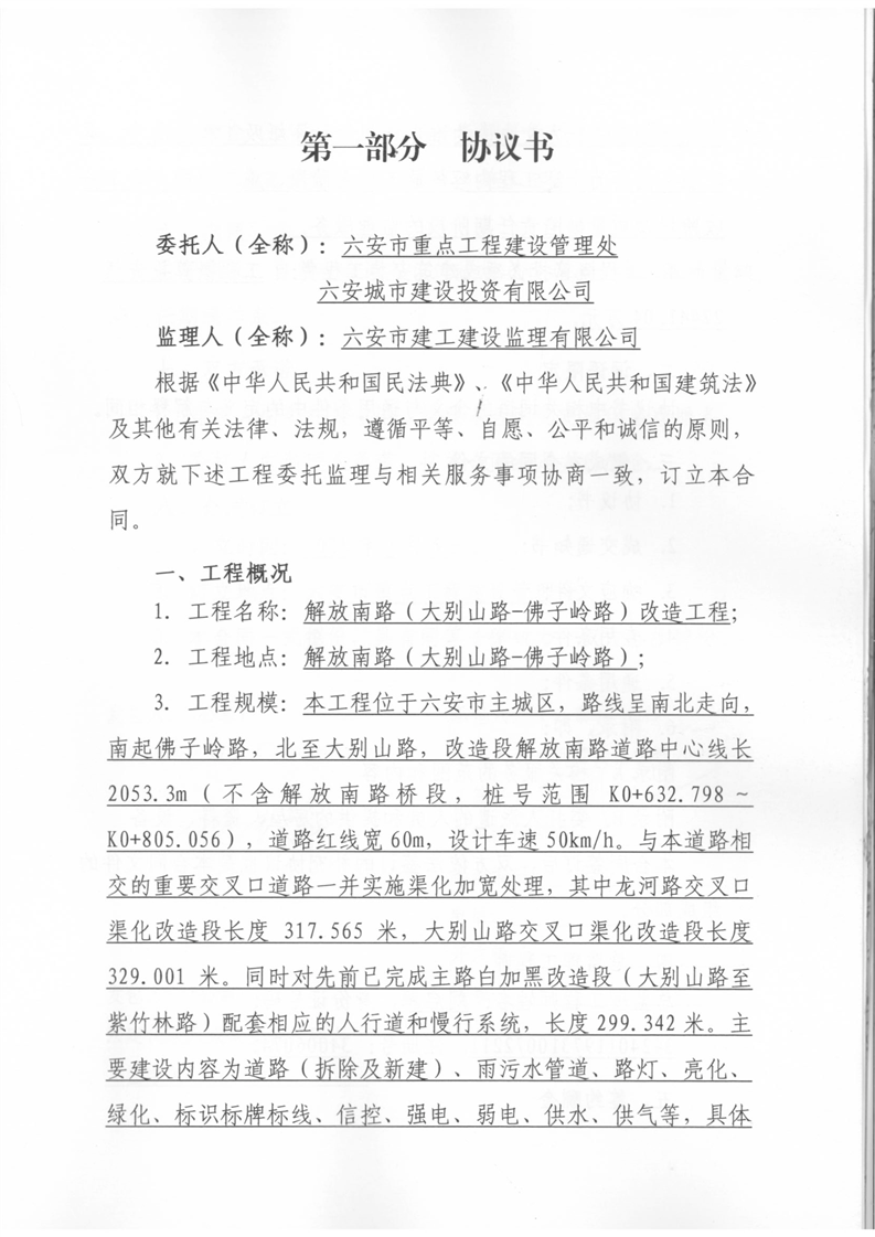 解放南路(大别山路-佛子岭路)改造工程建设工程监理合同