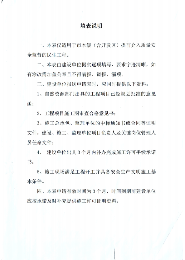 将军路幼儿园建设工程提前介入质量安全监督申请表