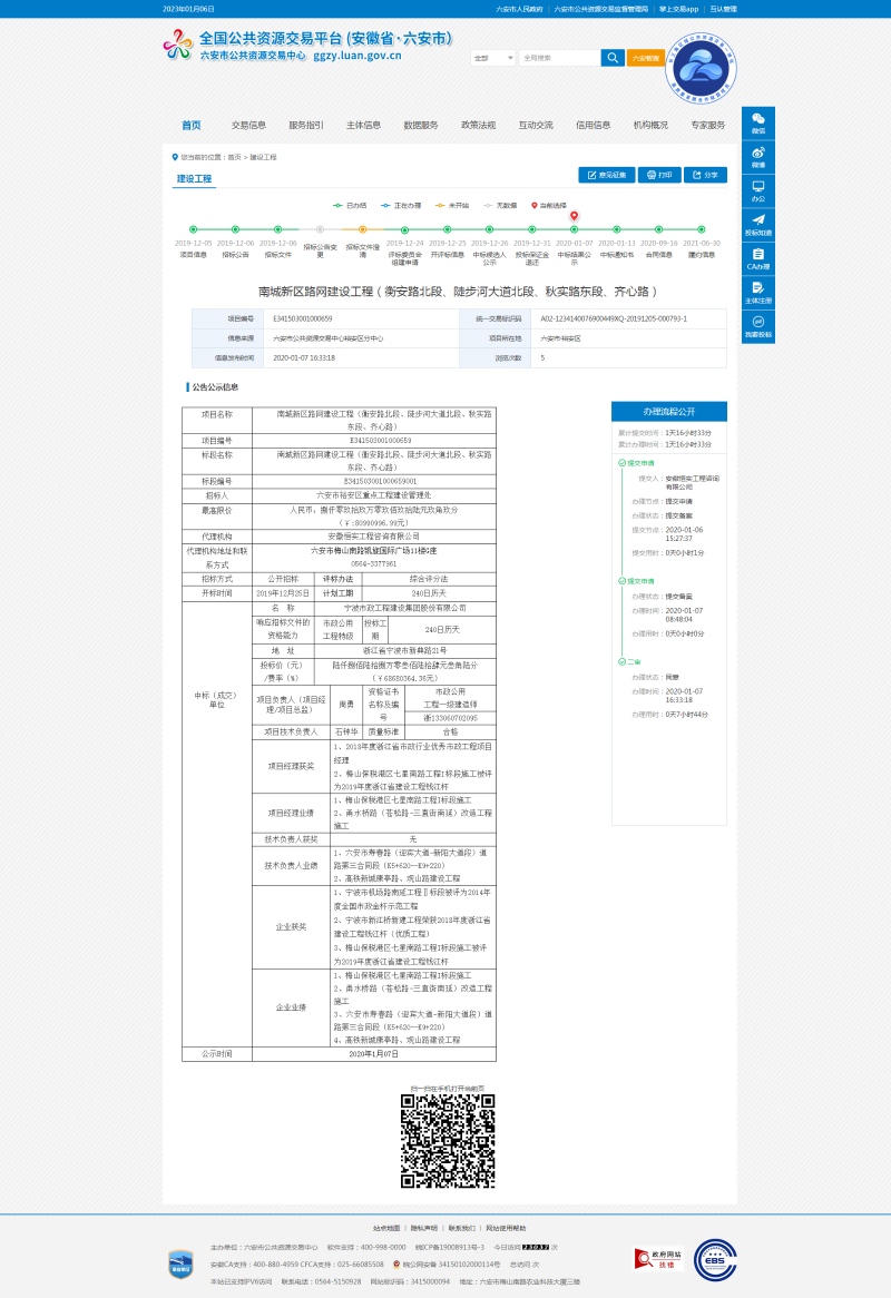 关于南城新区路网建设(4条路)工程的中标结果的公示