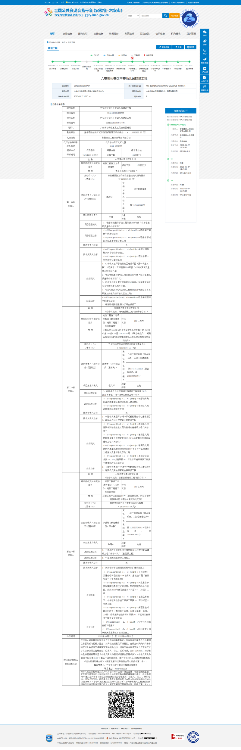 平安幼儿园建设工程中标候选人公示