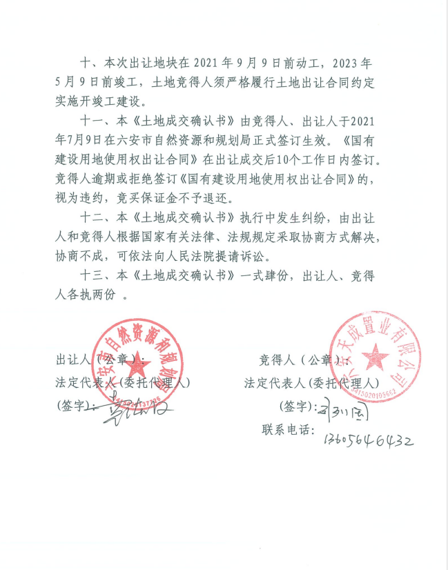 裕安区嘉和人家安置小区项目建设地块土地成交确认书