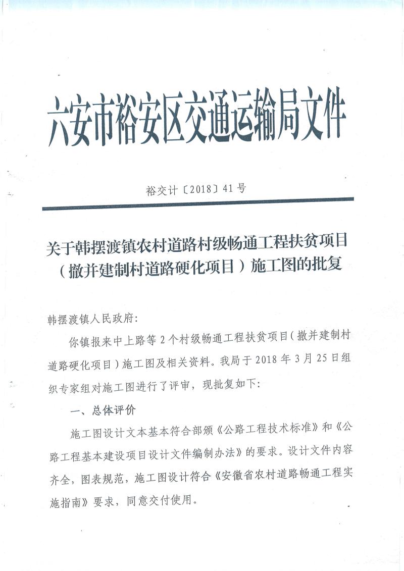 裕安区农村道路畅通工程施工批复