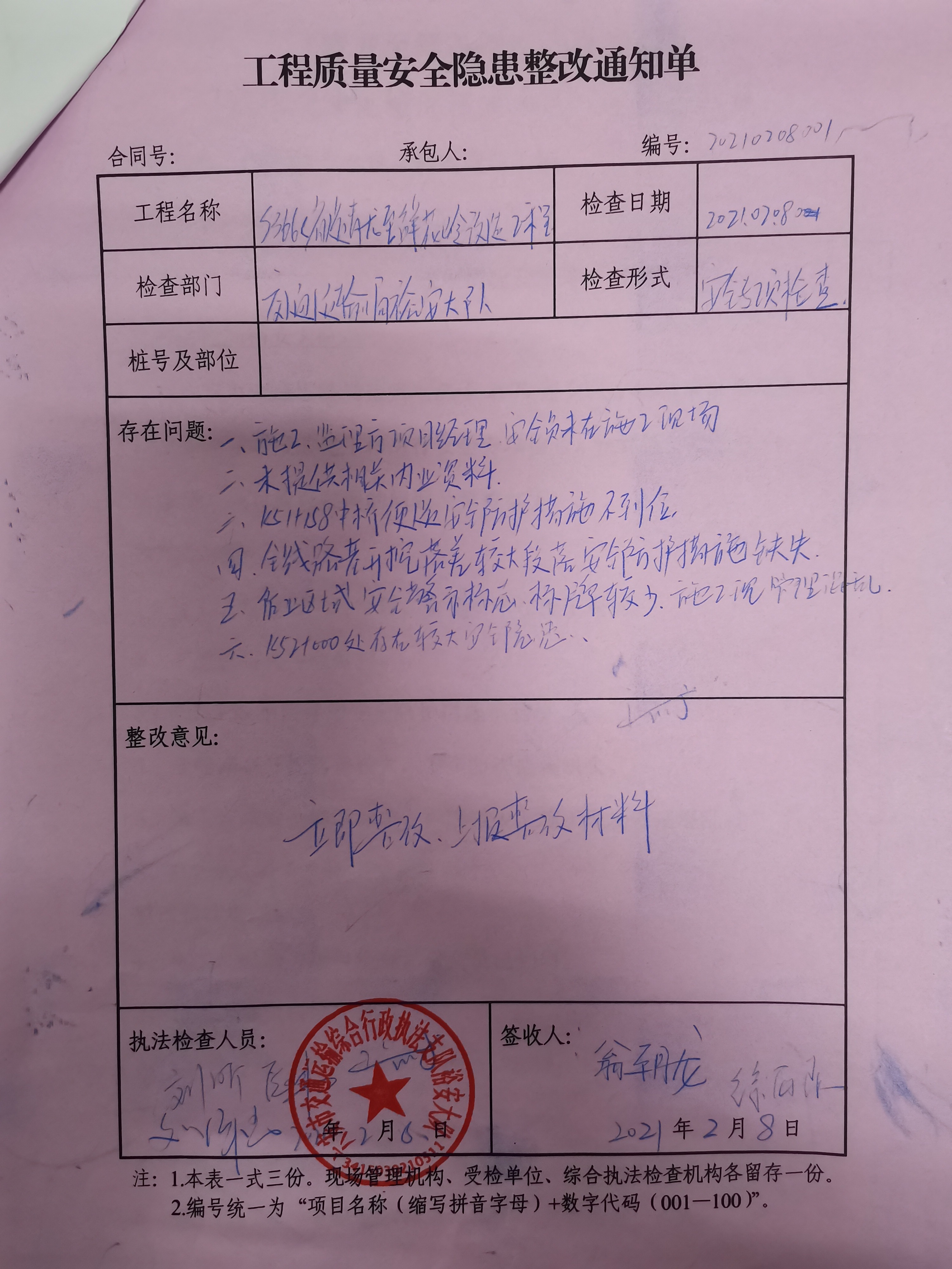 S366省道青龙至鲜花岭段改建工程安全生产监督检查