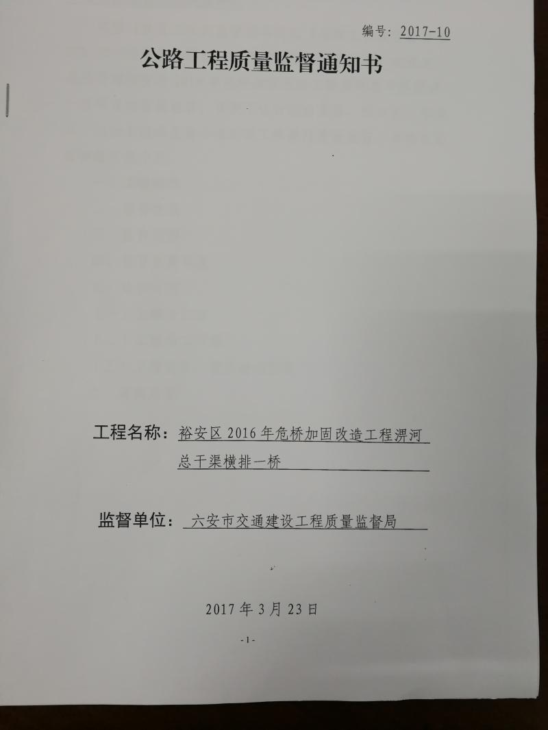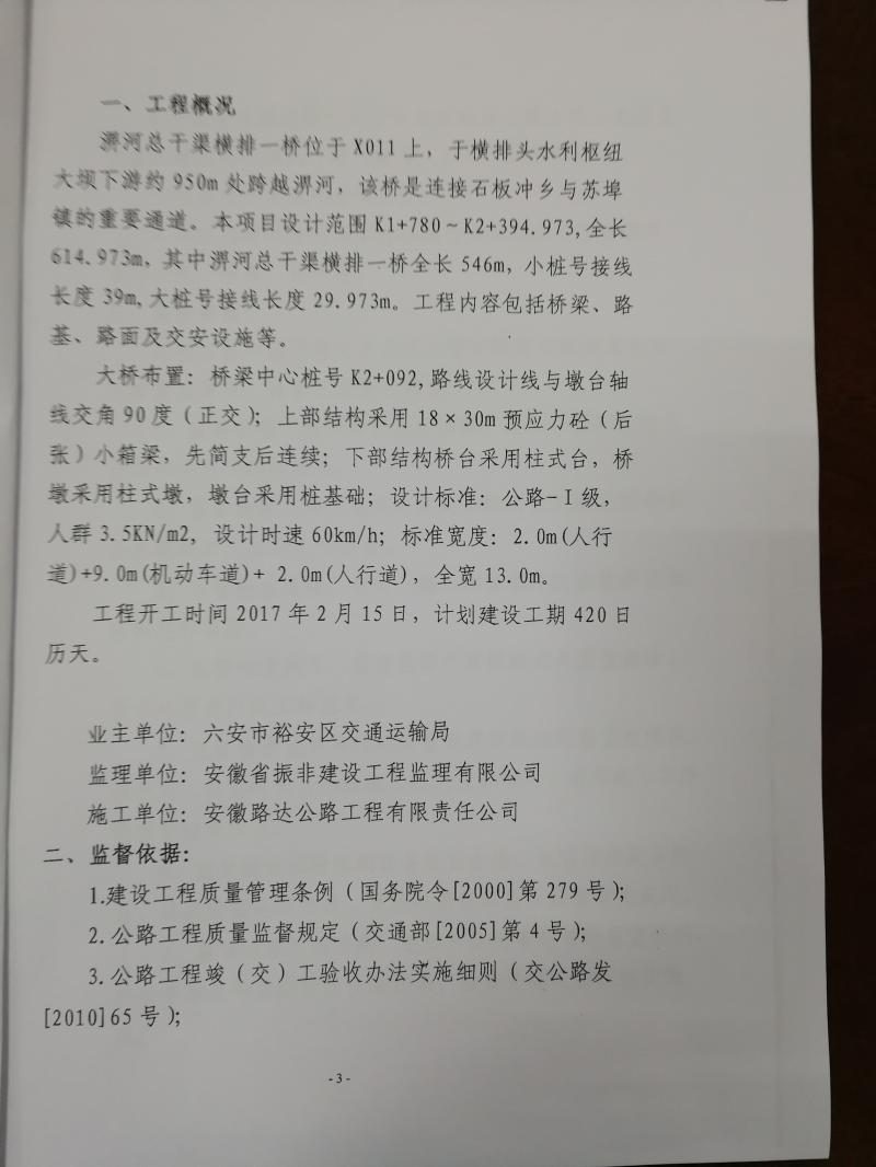 裕安区危桥加固工程淠河总干渠横排一桥(横排头大桥)工程