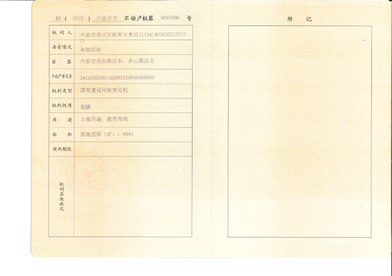 齐云西路幼儿园不动产权证书