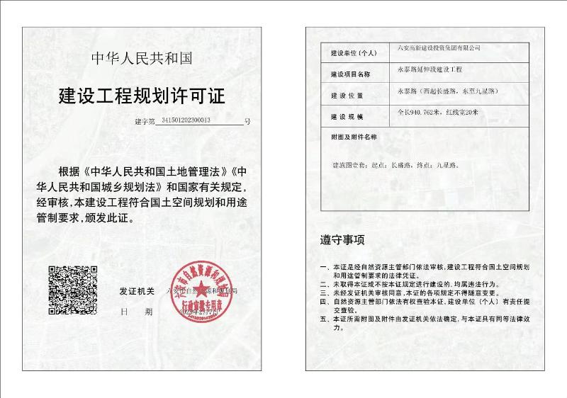 永泰路(长盛路-九星路段)建设工程规划许可证