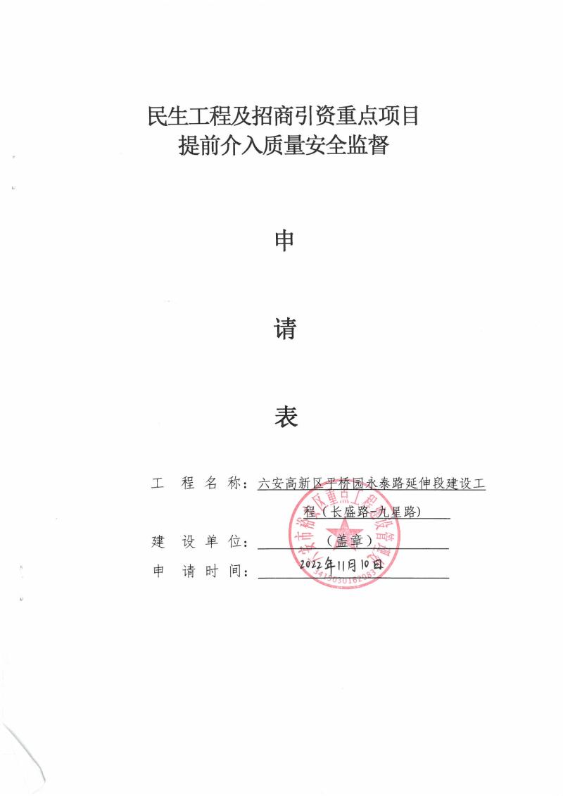 永泰路(长盛路-九星路段)建设工程质量安全监督信息