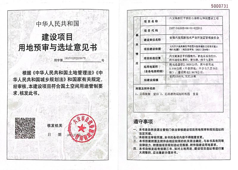 永泰路(长盛路-九星路段)建设项目用地预审与选址意见书