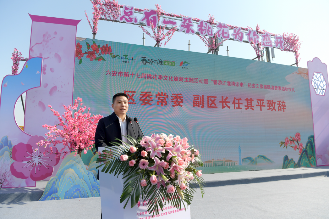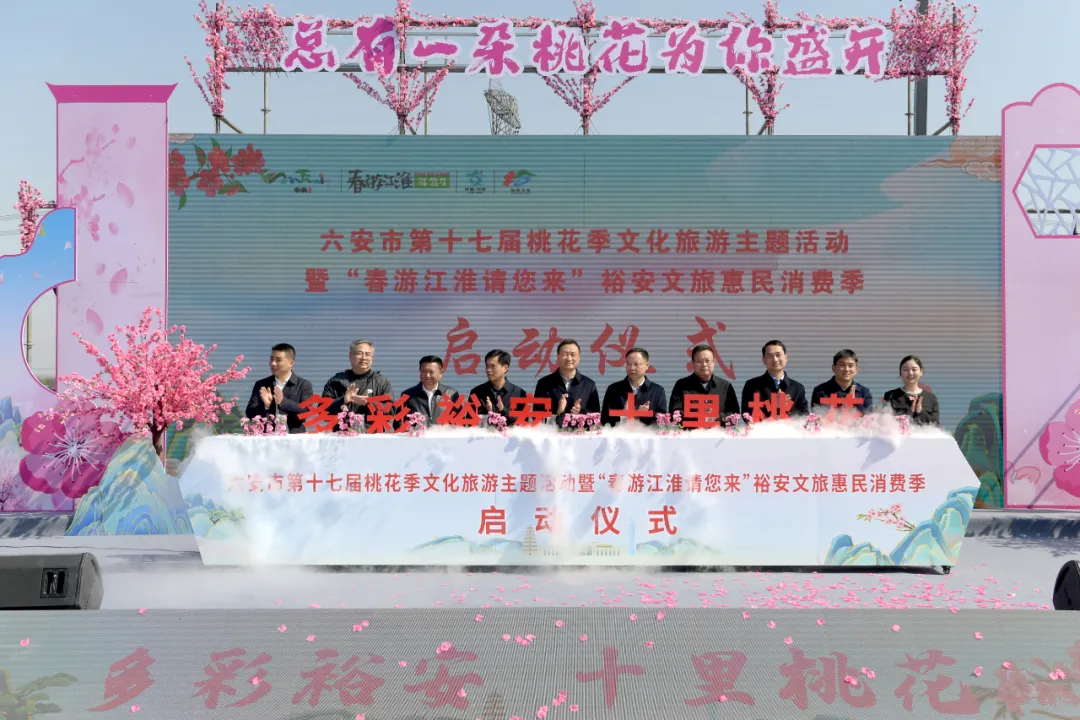 仪式上,关传兵、董永来、李守成等共同启动了六安市第十七届桃花季文化旅游主题活动暨“春游江淮请您来”裕安文旅惠民消费季活动。