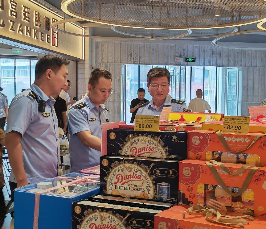 本次检查以商超、农贸市场、农村食杂店等场所为重点区域,以节日需求量比较大的米、面、油、肉制品、奶制品、各种酒类以及中秋节令食品月饼等糕点类食品为重点产品,以进货查验、包装及标签标识、产品贮存等为重点检查环节。执法人员还宣传引导相关经营者落实食品安全主体责任,诚信守法、合规经营,抵制过度包装、虚假宣传,自觉维护市场秩序。