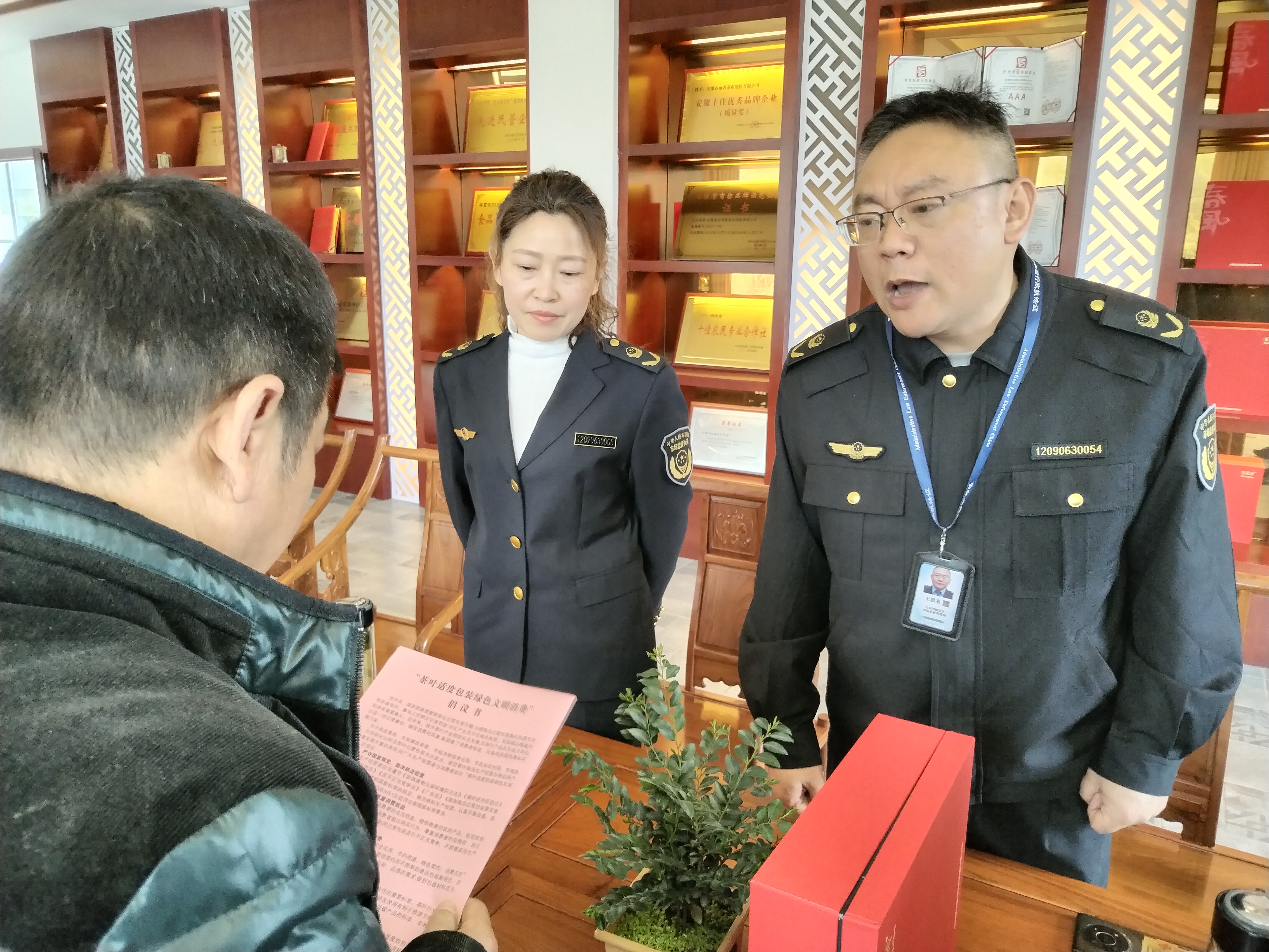 一是加强茶叶过度包装监管。重点对茶叶包装层数、包装空隙率和包装成本等指标是否符合强制性国家标准进行了检查,执法人员在检查过程中结合GB 23350-2021《限制商品过度包装要求食品和化妆品》及第1号、第2号修改单中关于茶叶过度包装的最新要求,现场对茶叶包装盒容积进行测量,初判包装空隙率是否符合国家标准。围绕如何把好采购关、识别商品过度包装等方面内容对经营者进行了现场指导,向其宣传普及限制商品过度包装的相关要求,对不符合要求的包装责令下架整改,督促经营者不采购、不销售过度包装茶叶。让商品“轻装上阵”,节约资源、保护环境。