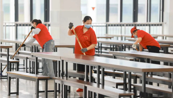 食堂区域同样紧张有序。全体餐饮员工接受了集中培训,从食品安全规范到服务标准,进行了全面强化训练。食堂后厨已经完成深度清洁和消毒,各类餐具厨具摆放整齐,静候学子归来。“通过对设施设备全面排查检修、食堂后厨和宿舍公共区域消杀,从源头保障师生饮食和住宿健康。”六安实验中学副校长钟楼说。