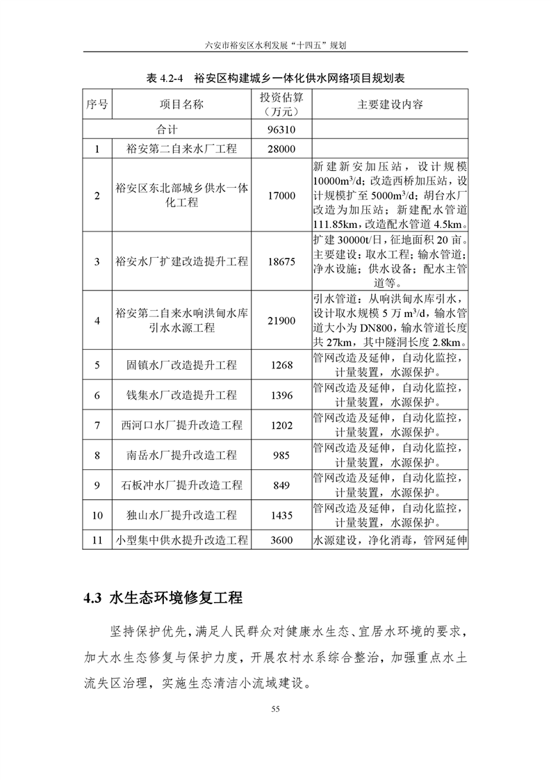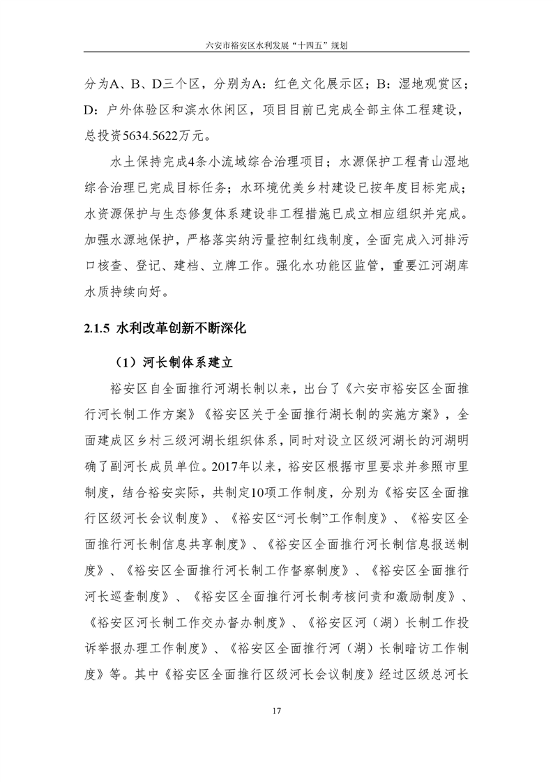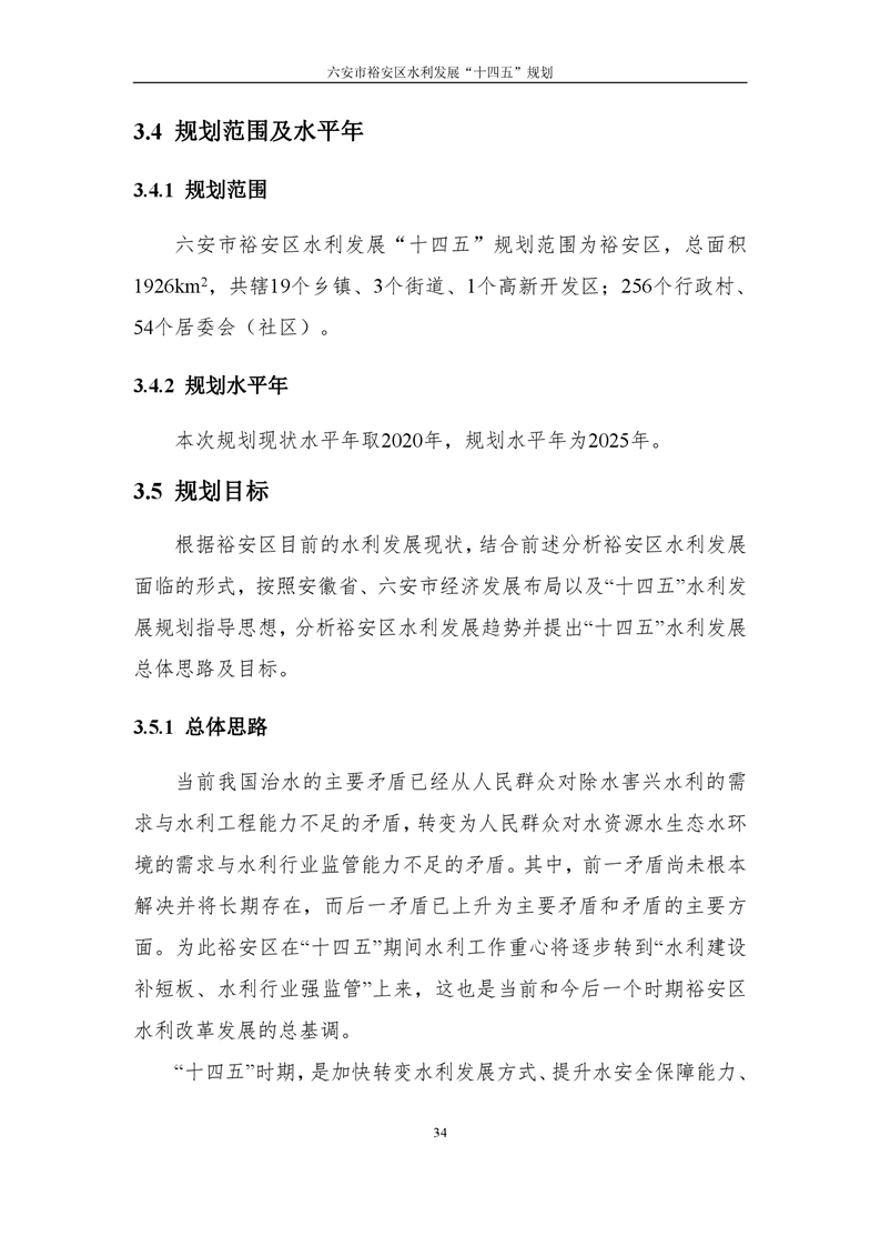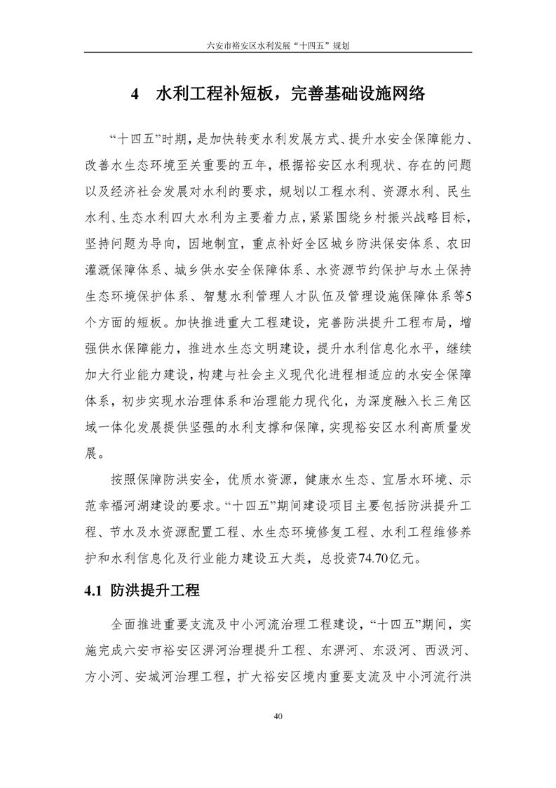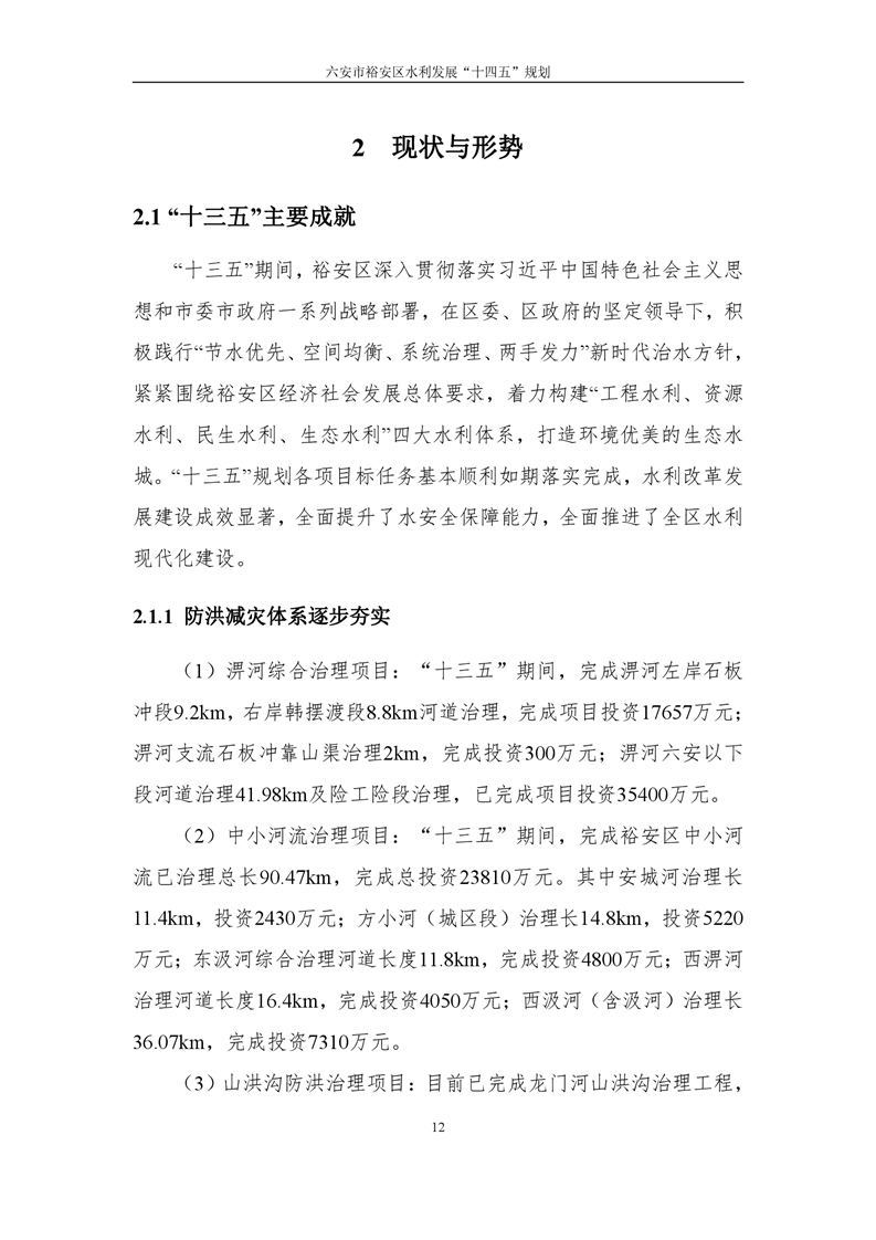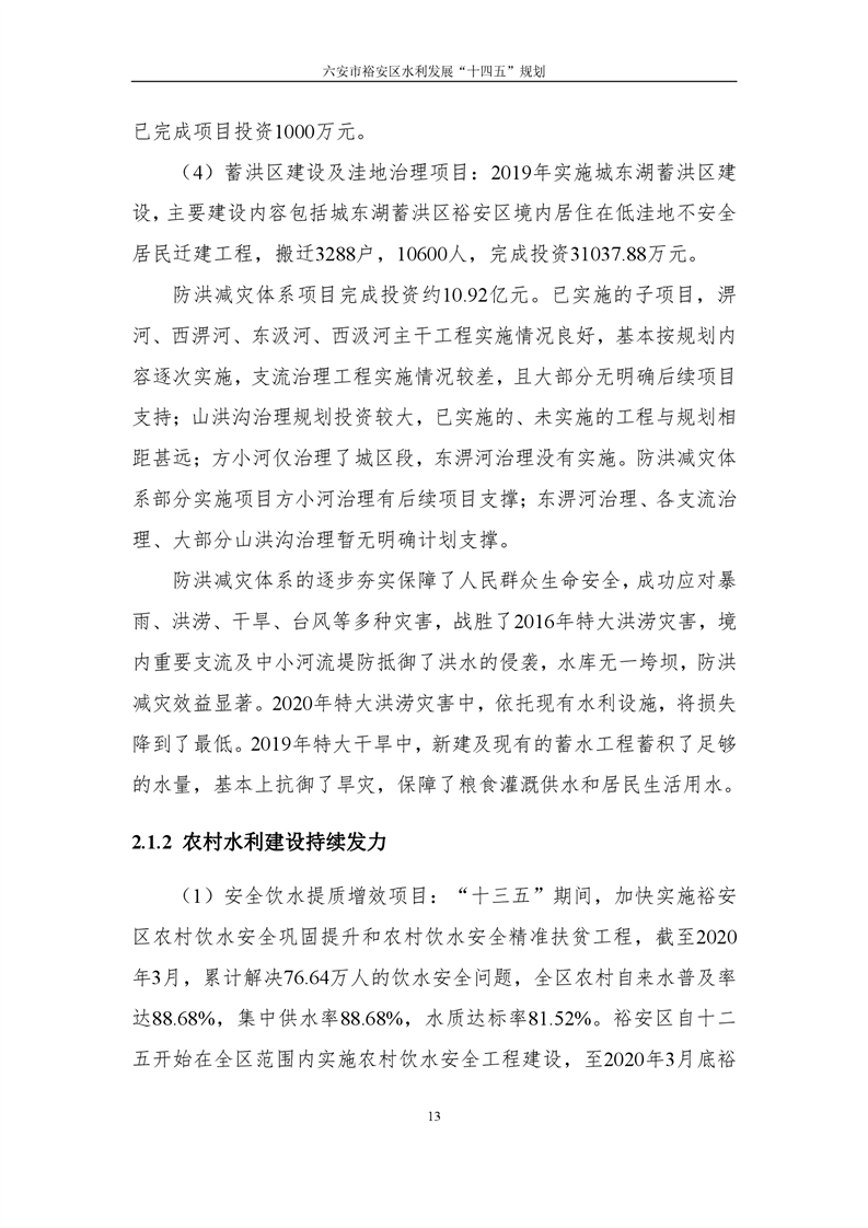 六安市裕安区水利发展“十四五”规划